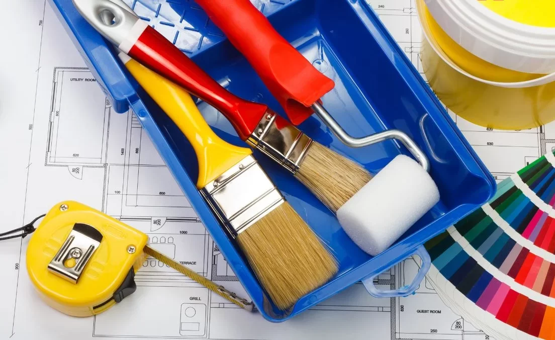 - Con lăn, chổi sơn, băng keo bảo vệ, đồ bảo hộ